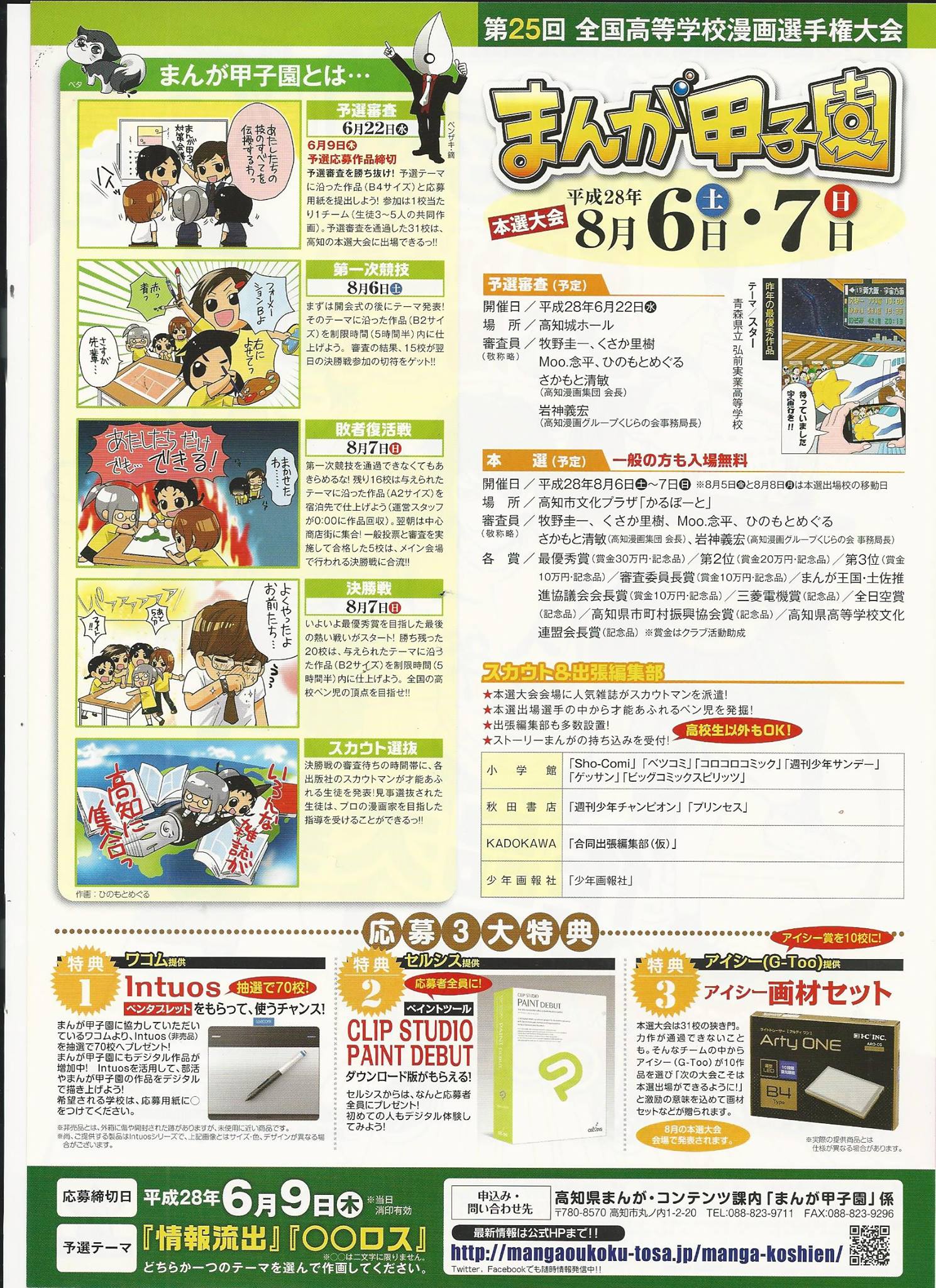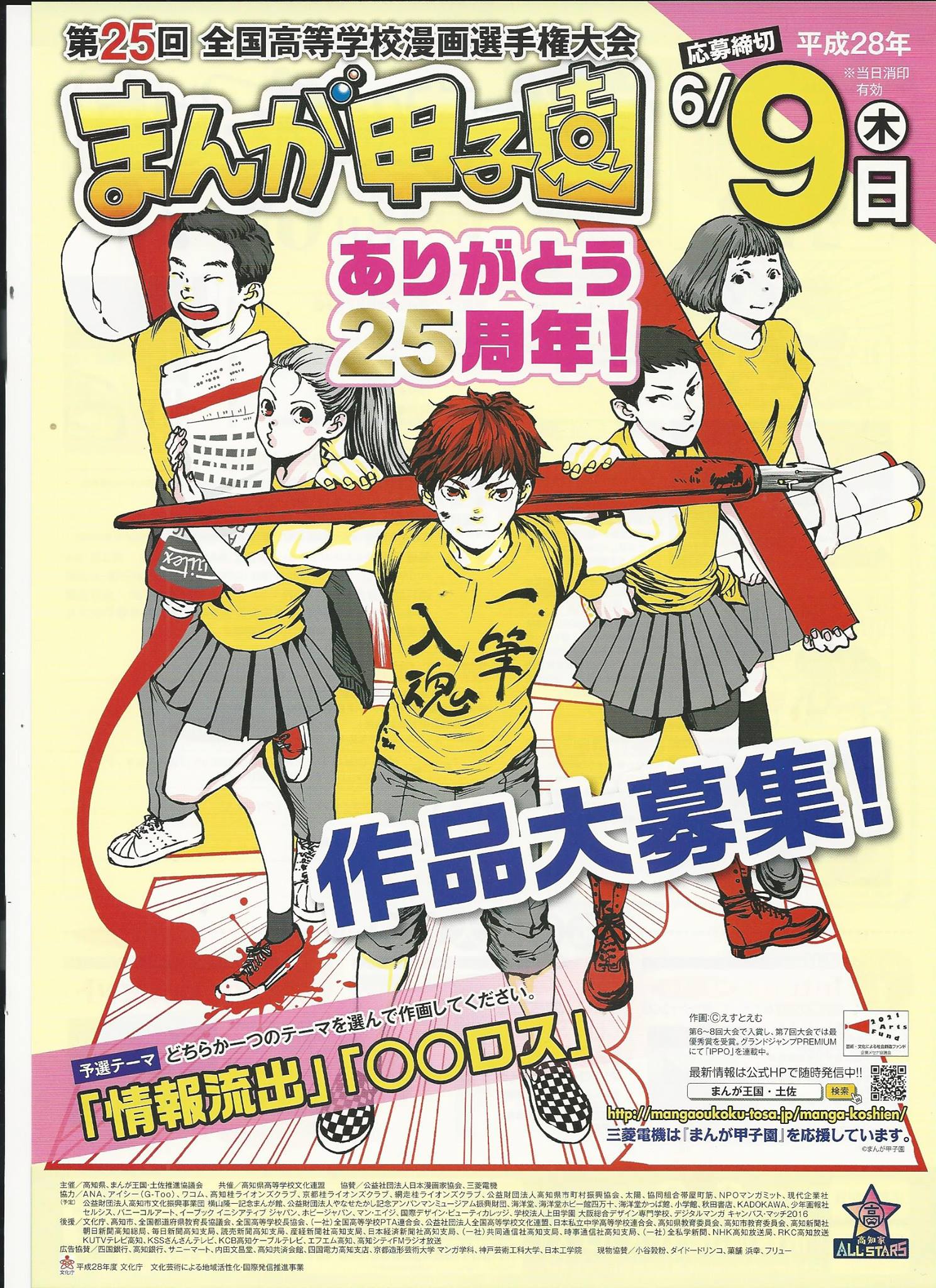 【高知縣】第25屆日本全國高等學校漫畫錦標賽(漫畫甲子園)歡迎台灣高中高職生組隊參加