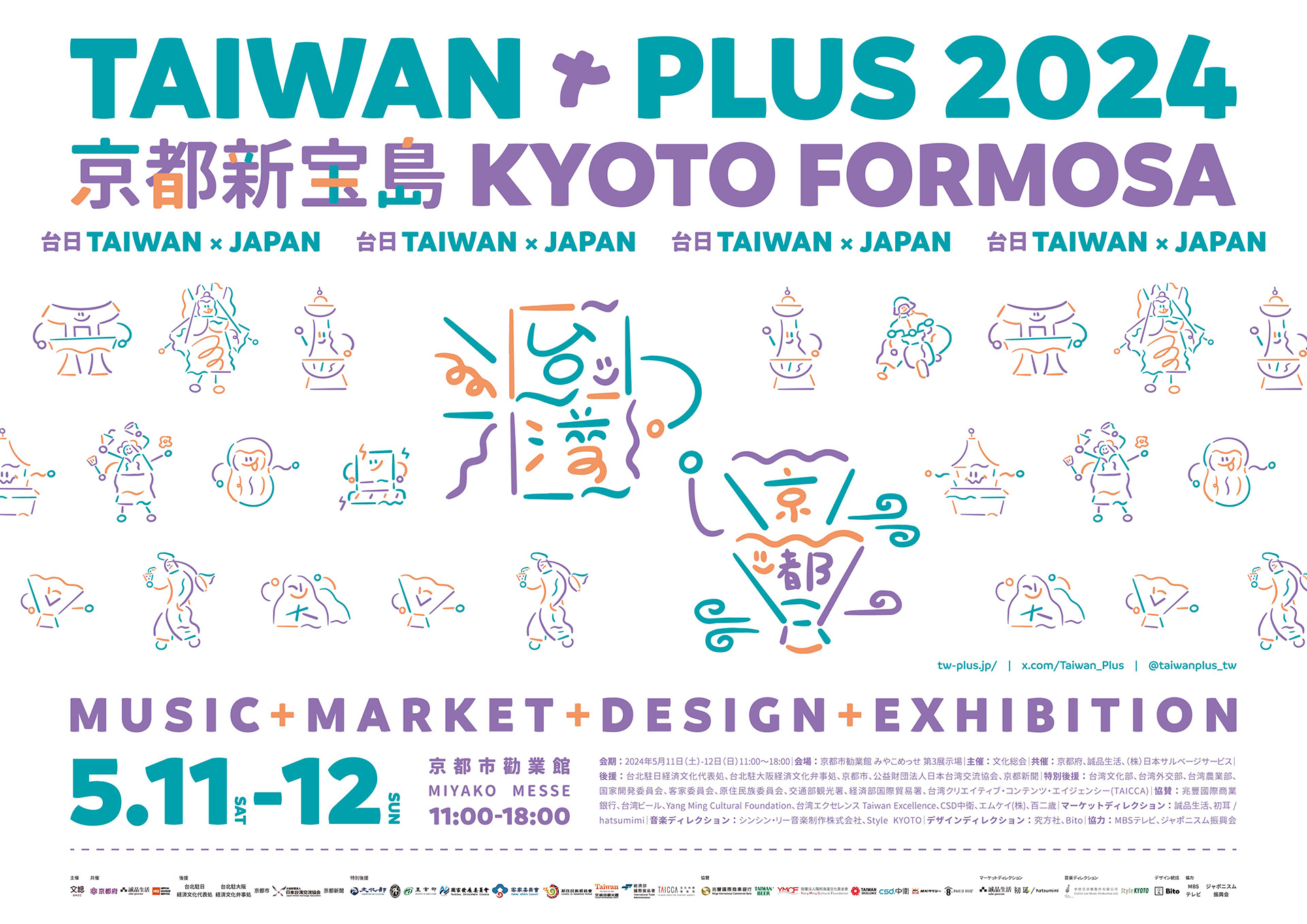 第五屆 TAIWAN PLUS 於2024年首次移師京都舉行。本次,不僅有日本在地企業的合作、加乘文化交流平台資源外,更加入京都府協力,帶領京都在地各界共襄盛舉,有市集、美食、音樂表演、文化展覽活動,讓台日交流進化為台日共創,TAIWAN PLUS KYOTO 將激盪更精采的文化新能量!