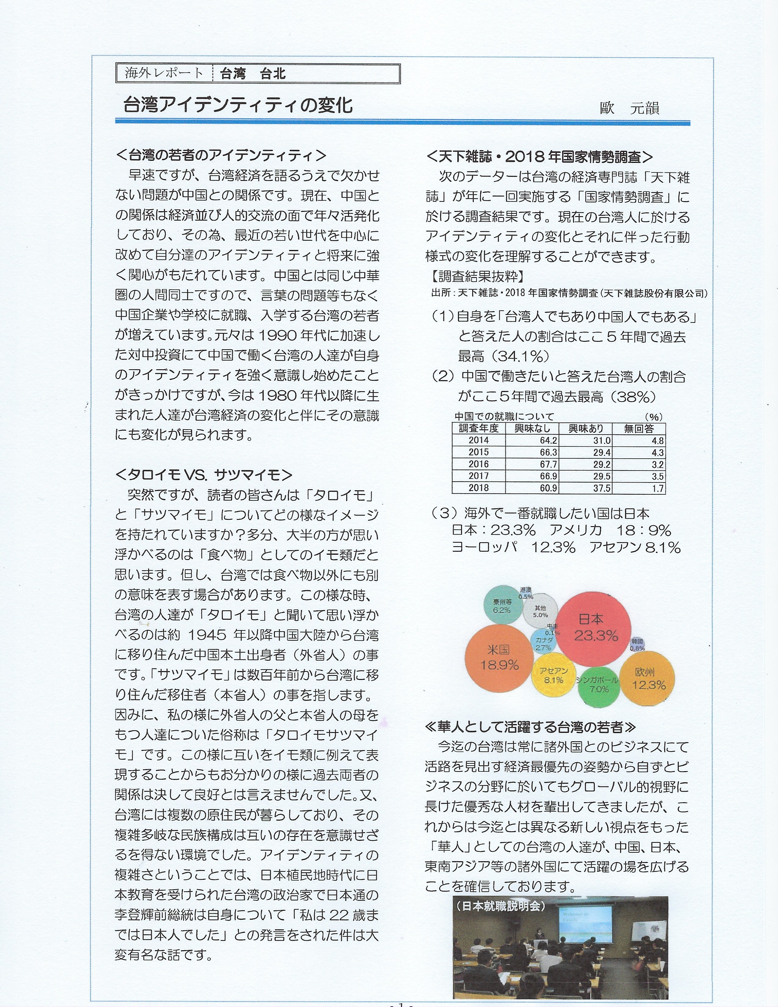 【広島産業振興機構 ハッピーメール】2018年7月号 (テーマ:台湾アイデンティティの変化)